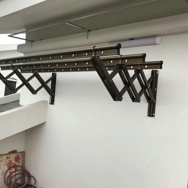 Hệ thống ray trơn tự động giúp việc kéo ra thu lại dễ dàng, tiết kiệm diện tích phơi đồ.